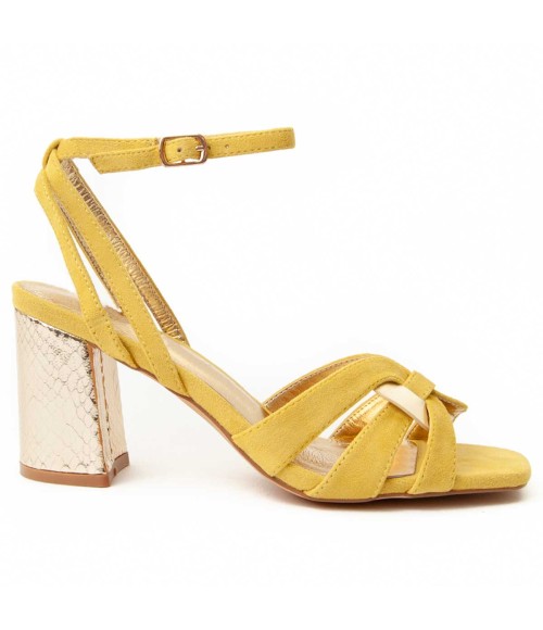 SANDALIA DE VESTIR PARA MUJER. PLANTILLA ACOLCHADA DE CUERO NATURAL. CALCE CÓMODO. SUELA ANTIDESLIZANTE. COSIDO REFORZADO. FABRICADO POR OTRAS MARCAS PARA NUESTRA MARCA. MEDIDAS APROXIMADAS: 8 CM TACÓN.